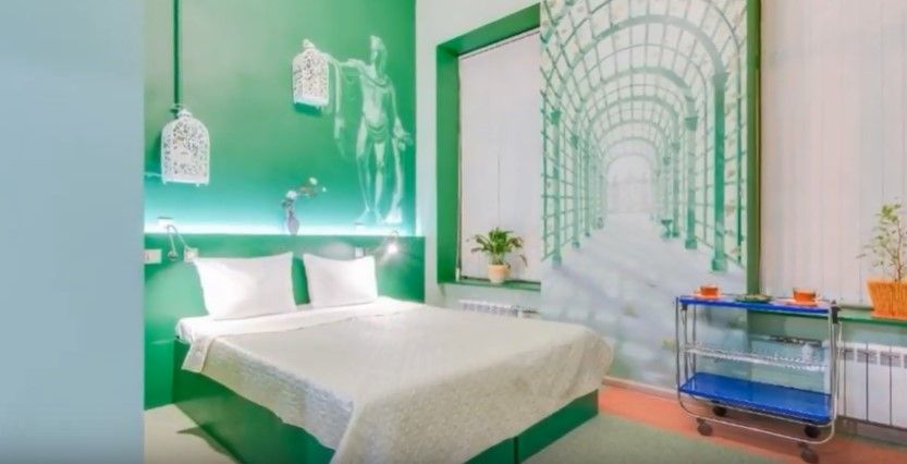 Das Drei-Sterne-Hotel befindet sich in der Nähe des Zentrums von St. Petersburg und grenzt an zahlreiche Cafés, Unterhaltungsmöglichkeiten und Supermärkte. Das Hotel erstreckt sich über zwei Etagen, ist stilvoll eingerichtet und verfügt über ein wunderschönes Interieur aus Hallen, Treppen und Korridoren. Auf jeder Etage gibt es einen riesigen Spiegel und eine Kühlbox mit Trinkwasser.Ungewöhnliches Design der Zimmer mit einer Kombination aus Ziegelwänden und -decken, Badezimmer mit modernen Materialien. Die Böden sind mit weichem Teppich ausgelegt. Die Zimmer sind Doppelzimmer mit einem, zwei Betten und Familienzimmer mit Küche. Tägliche Reinigung und Wäschewechsel zu einem für die Gäste günstigen Zeitpunkt, höfliches und hilfsbereites Personal runden das angenehme Bild eines unvergesslichen Aufenthaltes im Hotel ab. Viele Gäste kommen hierher zurück, für sie gibt es ein Rabattsystem. Außerdem wird eine Woche vor und nach dem Geburtstag ein Rabatt von 15 % gewährt, 12 % - bei vollständiger Vorauszahlung der Zimmerreservierung.