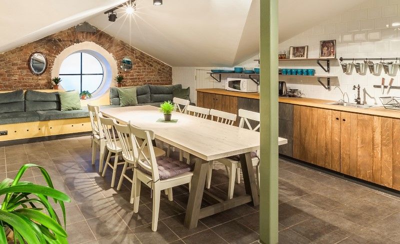 Das Hostel befindet sich im fünften und sechsten Mansardengeschoss eines Wohnhauses, der Eingang erfolgt über eine separate Haustür. Freundliche Verwalter treffen jeden Gast. In kleinen Räumen im Dachgeschoss blicken mehr als zwei Meter hohe Fenster auf den Newski-Prospekt. U-Bahn drei Minuten zu Fuß. Das Hostel befindet sich in der Nähe von Einkaufszentren und zahlreichen historischen Denkmälern der Stadt. In der Gemeinschaftsküche gibt es separate Schließfächer für jedes Zimmer, im Kühlschrank - für jeden Lebensmittelbehälter. Die Küche ist mit allem ausgestattet, was man zum Kochen braucht. In der Nähe der Herberge gibt es einen guten Speisesaal mit einer abwechslungsreichen Speisekarte.