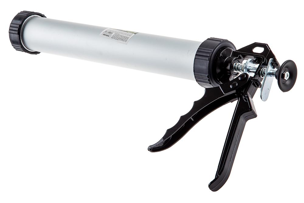 Das Gerät ist geschlossen aufgebaut. Aus diesem Grund kam die Waffe in die Wertung.Der Metallbehälter sorgt für die Sicherheit der Tube mit Inhalt. Dieses Gerät ist effektiv bei Arbeiten an schwer zugänglichen Stellen (Autoservice usw.). Der geschlossene Boden verleiht dem Gehäuse eine erhöhte Festigkeit. Der Metallstab bewegt sich also in genau eine Richtung.