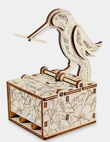 Eine einzigartige Option, an der die Designer hart gearbeitet haben, ist aus Birkensperrholz. Der Container wird montiert und demontiert. Das originelle Accessoire eignet sich für einen besonderen Anlass und ist eine tolle Tischdekoration. Im Alltag wird es auch gut aussehen und das Auge der Gastgeberin erfreuen. Eine schöne Geschenkverpackung ist eine Ergänzung. Ein dekoratives Element ist ein Vogel, es ist auch an der Lieferung von Holz- oder Kunststoffstäbchen beteiligt.