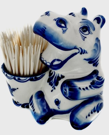 Ständer in Form eines nach russischen Traditionen handbemalten Nilpferds kann ein gutes Souvenir sein. Das Material des Halters ist hochwertiges Porzellan. Dekorative Elemente werden mit der Methode der monochromen und polychromen Malerei hergestellt. Dieses einzigartige Produkt hat keine Analoga. Das handgefertigte Porzellanprodukt des Autors wird in einer schön gestalteten Markenverpackung verkauft. Kosten - 1840 Rubel.