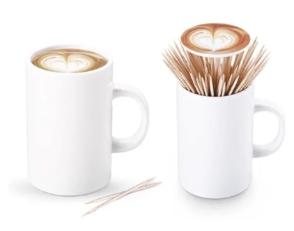 Stilvoller automatischer Ständer für Zahnstocher in Form einer Kaffeetasse. Wenn Sie auf den Deckel drücken, hebt sich der Mechanismus und Zahnstocher erscheinen. Das Modell ist aus hochwertigem Kunststoff gefertigt. Höhe - 98 mm. Die durchschnittlichen Kosten betragen 490 Rubel.
