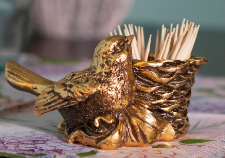 Bronzekonstruktion, macht den Ständer zuverlässiger und langlebiger. Das Produkt wiegt 245 g Abmessungen: 6,0 x 9,0 x 12,0 cm Schöne Verpackung kann als Geschenk verwendet werden. Zahnstocher lassen sich leicht aus dem Körbchen entnehmen. Ein daneben sitzender Vogel schmückt die Struktur. Der Durchschnittspreis beträgt 2260 Rubel.