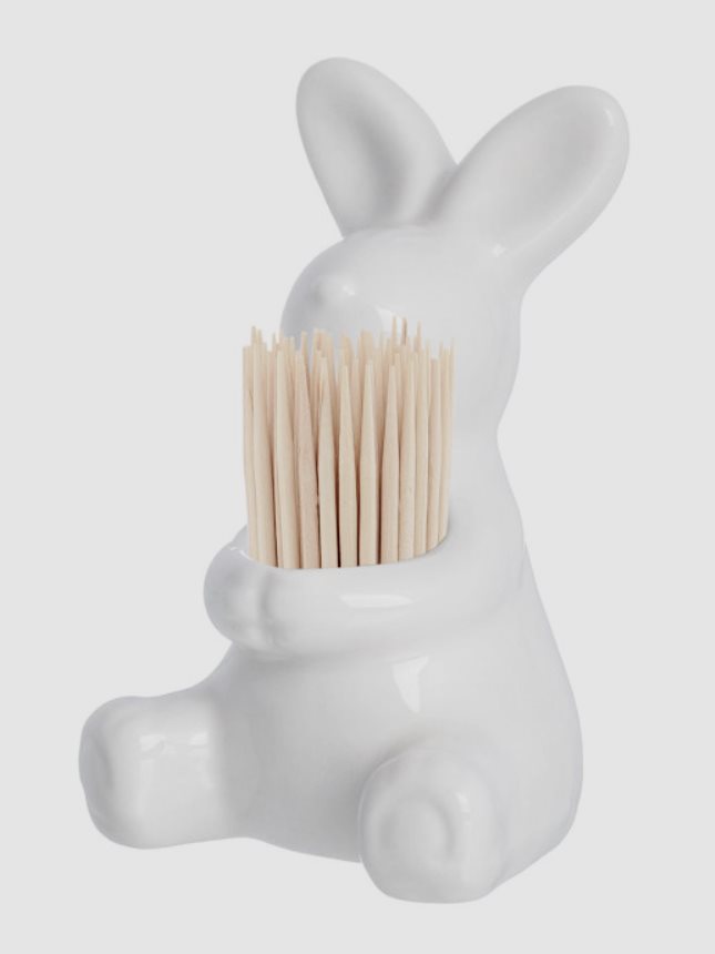 Der süßeste weiße Hase schmückt nicht nur den festlichen Tisch, sondern passt auch gut in jedes Kücheninterieur. Die für die Hygiene so wichtigen Holzstäbchen sind immer griffbereit. Die Produkte sind kompakt, aber gleichzeitig sehr geräumig. Abmessungen: 4,5 x 5,0 x 8,0 cm Ständermaterial - Porzellan. Der Hauptvorteil ist die hohe Stabilität und einfache Bedienung. Es ist möglich, dass das Produkt als Geschenk präsentiert werden kann, da es in einer schönen Verpackung verkauft wird. Kosten - 1000 Rubel.