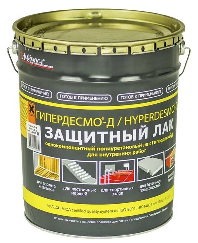 Ein ähnliches Muster wird für den Innenausbau verwendet, schützt die Basis vor Kratzern und Abnutzung. Es wird auf Holzböden (Parkett, Massivholz, exotische Holzböden), Möbel, Türen, Treppen, Terrassen und andere Holzkonstruktionen aufgetragen. Perfekt für den Einsatz an Orten mit starker Belastung, schädlichen Umwelteinflüssen, starkem Personenverkehr.Es kann für Arbeiten im Freien verwendet werden, jedoch nur an Orten, die keiner direkten Sonneneinstrahlung ausgesetzt sind. Für maximale Verschleißfestigkeit und reduzierten Verbrauch wird als erster Anstrich eine Grundierung empfohlen. Der empfohlene Preis für Einzelhandelsketten beträgt 2440 Rubel.