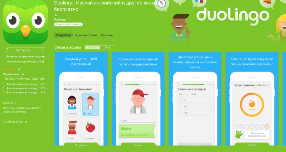 Das geschlossene iOS-Informationssystem ist nur für iPad, iPhone und Apple TV installiert und speziell darauf ausgelegt. Sie können iOS nicht auf einem Drittanbieter-Smartphone installieren. Daher lohnt es sich für Besitzer von Apple-Geräten, Fremdsprachenlernprogramme zu wählen, die speziell für iOS erstellt wurden. Und es gibt viele von ihnen, normalerweise gibt es eine Markierung, die über die Ernennung für ein bestimmtes System informiert. Das Programm kann über den App Store heruntergeladen werden.