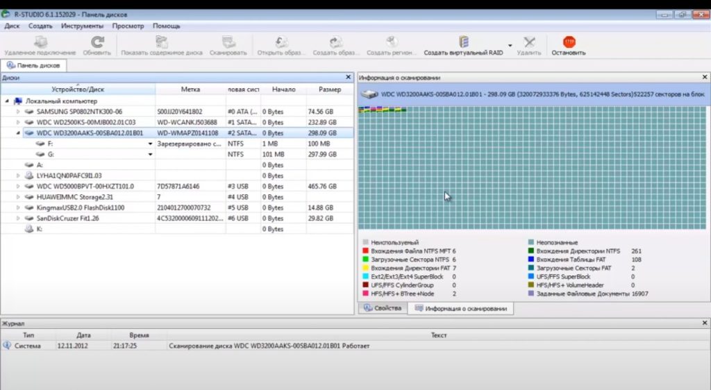 Das Scannen erfolgt auf unterschiedliche Weise. Zunächst wird eine Datensuche unter Verwendung der Plattendateitabelle oder eine Tiefenanalyse verwendet, um Material aus dem Inhalt der Datei wiederherzustellen. In "harten" Fällen, wenn die Verwendung eines Scantyps keine guten Ergebnisse liefert, werden beide Programme gleichzeitig gestartet und arbeiten zusammen.