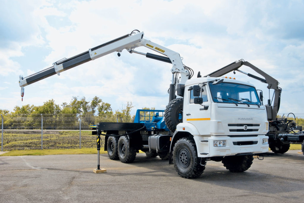 Seit 1947 entwickelt das schwedische Unternehmen HIAB Ladekrane für schwere Maschinen.Derzeit produzierte der Konzern im Jahr 2019 etwa 15.000 Einheiten von Manipulator-Hebemechanismen. Eine Besonderheit dieser Baumaschinen ist die hohe Präzision und Verarbeitungsqualität. Die Reichweite des längsten Kranauslegers beträgt 8 Meter, wodurch die Ausrüstung die Last auf eine Höhe von 32 Metern heben kann.