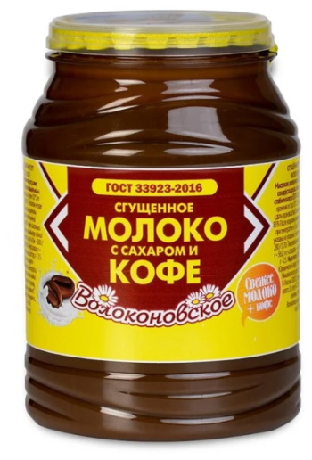 In Russland hergestelltes Milchprodukt in praktischer Kunststoffverpackung. Die Folie wird hermetisch auf den Hals aufgerollt und mit einem Deckel bedeckt. Es besteht aus normalisierter Milch, Zucker, natürlichem Instantkaffee sowie dem Stabilisator E339. Intensive dunkelbraune Farbe. Flüssige Konsistenz.