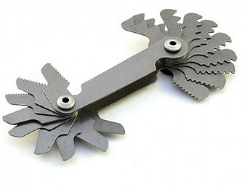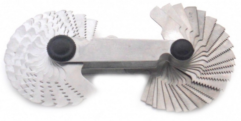 Das Gerät selbst ist ein Schablonensatz aus Metallplatten mit einer Dicke von etwa 1 Millimeter. An einem Ende der Platte befinden sich spezielle Aussparungen, die der Größe des zu messenden Gewindes entsprechen, d.h. Profil und Steigung. Diese Zahnplatten werden auch als Kämme bezeichnet. Bei ihren metrischen Versionen wird die Gewindesteigung eingestellt und bei den Zollversionen wird die Anzahl der Windungen pro Zoll angezeigt.