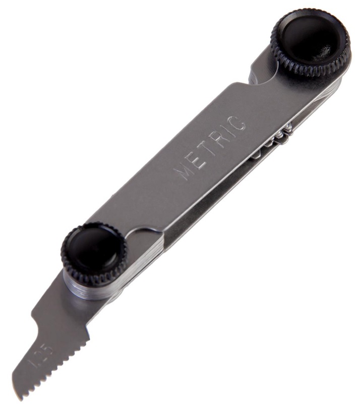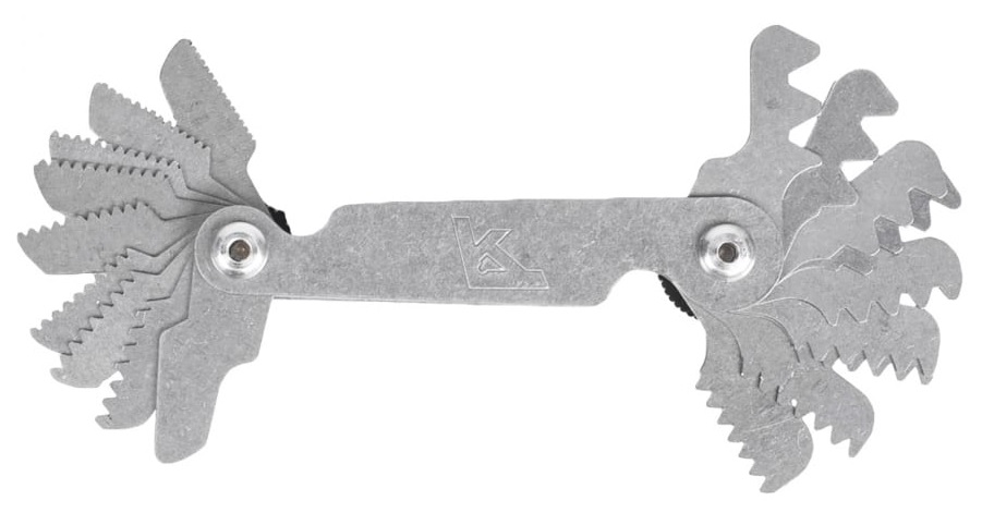 Ein hervorragendes Produkt eines niederländischen Herstellers, das die Vollständigkeit des Profils und die Steigung auf einem metrischen Gewinde bestimmen kann und auch mit speziellen Arten von westeuropäischen Fittings arbeiten kann, die mit Whi- und BSP-Technologien verbunden sind. Enthält einen Satz von 58 gezackten Klingen, die fest auf einem hochwertigen Metallclip montiert sind. Der Fehler beträgt nicht mehr als 8 Mikrometer, was den Overlay-Prozess sehr genau macht. Bei all seiner Funktionalität und seinen großen Abmessungen überschreitet das Gewicht des Geräts 100 Gramm nicht. Die empfohlenen Kosten für Einzelhandelsketten betragen 1800 Rubel.