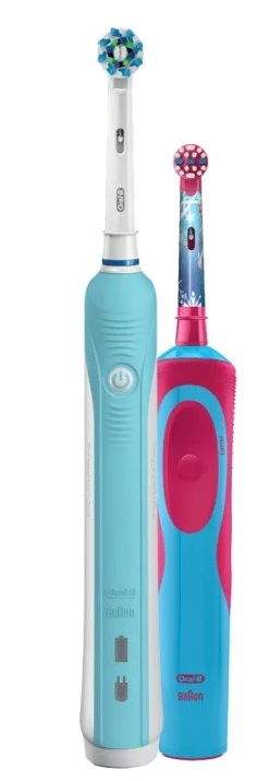 Das Dental-Set besteht aus einer Kinder- und einer Erwachsenenbürste (das Modell Pro 570 CrossAction ist oben ausführlich beschrieben).Das Design der Kinderversion orientiert sich an dem Abenteuer-Zeichentrickfilm „Frozen“, der den kleinen „Prinzessinnen“ nur gefallen kann. Der rot-blaue Ton des Griffs und der Borsten steht sowohl Jungen als auch Mädchen. Eine Betriebsart - tägliche Reinigung. Die Geräte werden von einem eingebauten Akku mit Strom versorgt, der mit einem Timer, einer Farbanzeige für den Düsenverschleiß und einer Leistungsanzeige ausgestattet ist.