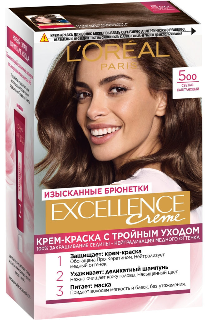 Widerstandsfähige Farbe eines namhaften Herstellers, geeignet für alle Arten und Strukturen. Deckt graues Haar effektiv ab und beseitigt Gelbstich. Die Haltbarkeit beträgt sechs Monate. Präsentiert in 6 Farbtönen, von hellblond bis dunkelkastanienbraun. Verleiht strahlenden Glanz, pflegt ihre Struktur und Kopfhaut. Durchschnittspreis: 341 Rubel.