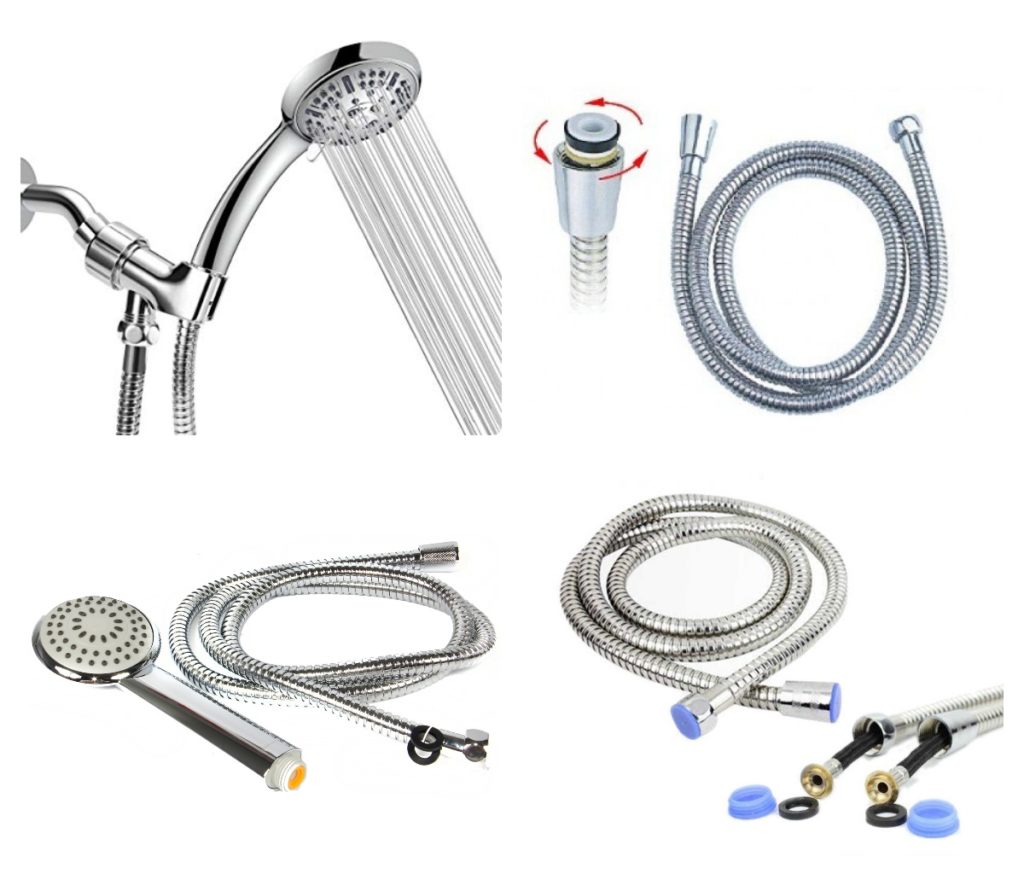 Ein Kunststoff- oder Gummischlauch, der in einem Metallgehäuse oder einem anderen Geflecht angeordnet ist, ist ein Brauseschlauch. Dadurch gelangt Wasser in das Sprühgerät. Sie können die Struktur mit einer Halterung befestigen. Dadurch werden die Hände frei, was für maximalen Komfort beim Duschen sorgt.