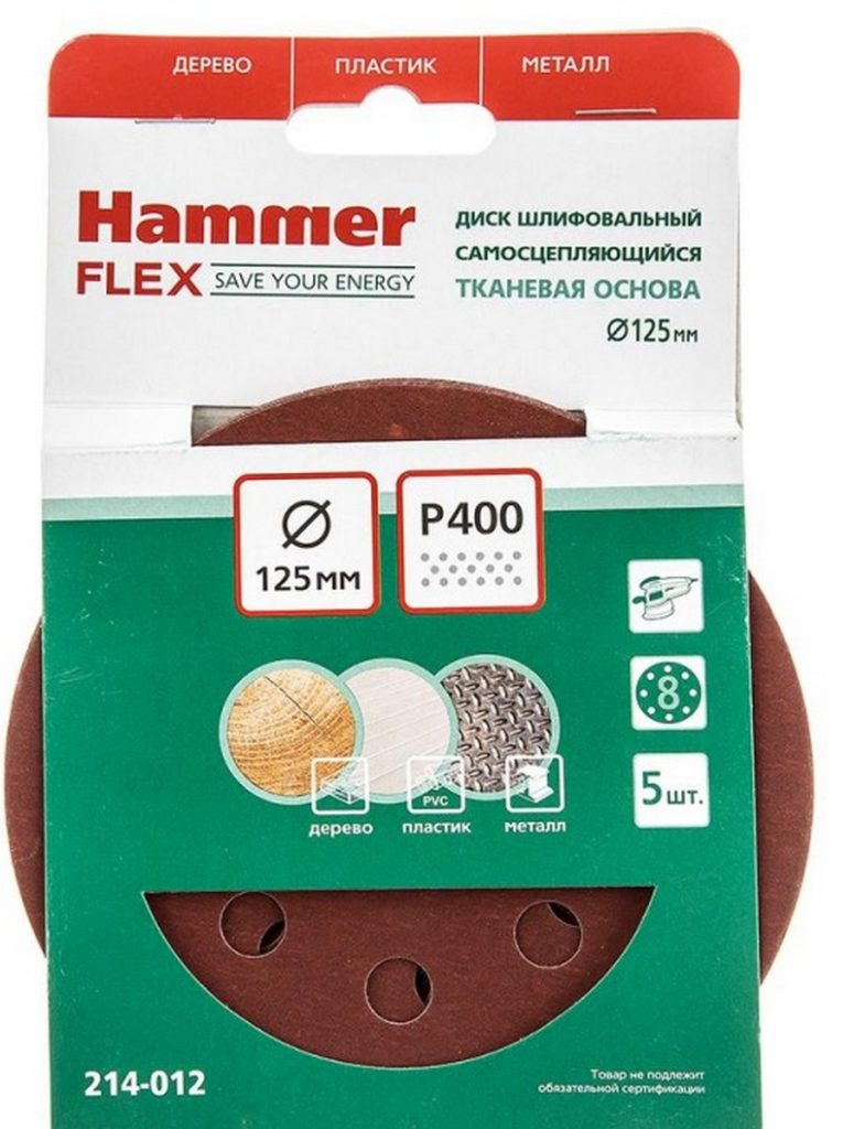 Die im Kit enthaltenen Muster haben eine solide Stoffbasis. Es zeichnet sich durch Strapazierfähigkeit und Elastizität aus, ist leicht dehnbar und verfügt zusätzlich über eine wasserabweisende Imprägnierung. Die Körnung der Scheibe ist auf 400 Einheiten eingestellt, der Fertigungsdurchmesser beträgt 125 Millimeter. Als Bindesubstanz wird Kunstharz verwendet, das für eine hocheffiziente Wärmeableitung verantwortlich ist.Das Schleifmittel selbst besteht aus Aluminiumoxid, dessen Fragmente sich während des Betriebs selbst schärfen können und keine Angst vor einer bevorstehenden Zerstörung haben. Der empfohlene Verkaufspreis beträgt 400 Rubel.