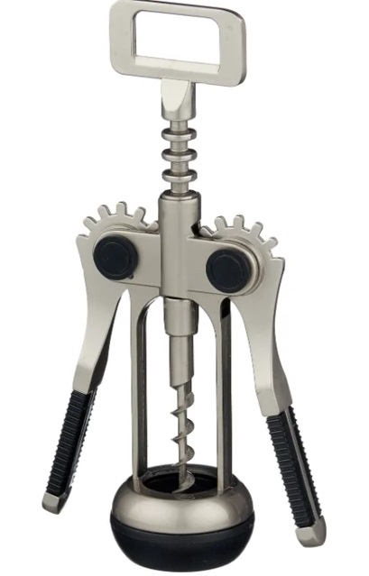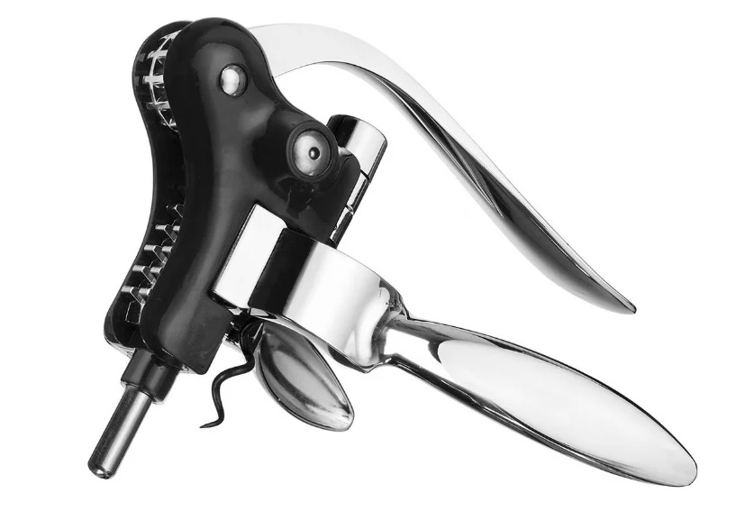 Die nächste Option ist auch sehr erschwinglich. Es ist eine Metallschraube, die sich im Inneren des Mechanismus befindet und Flügeln ähnelt. Daher sein Name - Schmetterlingskorkenzieher. Um eine Flasche mit einem solchen Korkenzieher zu entkorken, müssen Sie ihre „Flügel“ absenken und dann, während Sie die Flasche halten, die Spirale in die Mitte des Halses schrauben. Beim Einschrauben heben sich die „Flügel“ auf, wenn sie in ihrer höchsten Position sind, müssen Sie auf die Hebel drücken und der Korken kommt heraus. Die Verwendung eines solchen Produkts ist ziemlich einfach, aber es kann eine Blockade, die tief genug gepflanzt ist, nicht lösen.