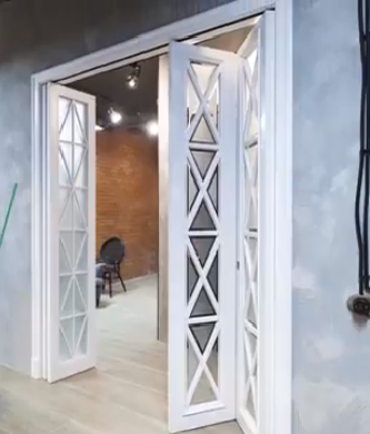 Die Holztür ist lackiert, getönt oder laminiert. Das Verfahren ist notwendig, um Schäden an der Erhaltung der Form zu vermeiden. Die dekorative Verarbeitung ist ein wichtiger Schritt bei der Herstellung von Faltstrukturen.