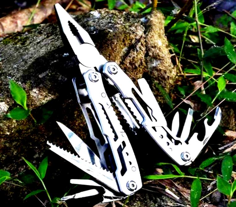 Etwas zwischen einem Schweizer Produkt und einem Balisong. Es gibt eingebaute Zangenelemente. Der Griff besteht aus zwei Teilen. Im Inneren befinden sich ein Kreuzschlitzschraubendreher, ein Standardartikel, eine Zange, ein Fischschuppenkonstrukt, ein Schaber, eine Nagelfeile, ein Dosenöffner und ein kompakter Dosenöffner. Das Produkt wird in einer praktischen Nylontasche geliefert. Sie können eine kleinere Version des Modells kaufen und als Schlüsselanhänger verwenden.