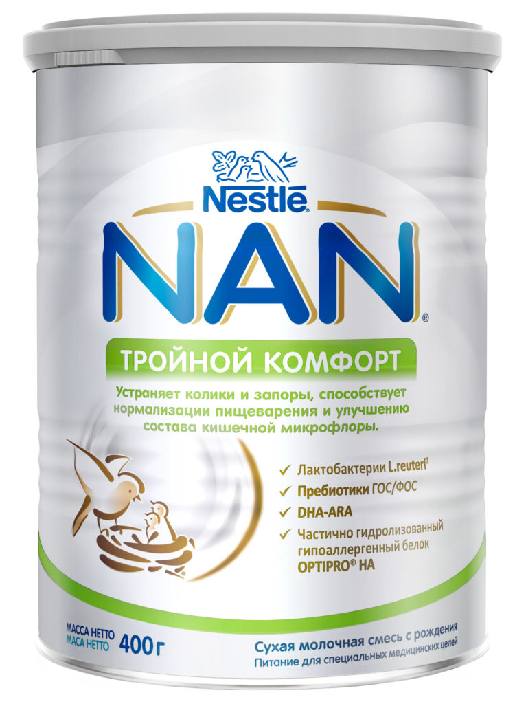 Ein weiteres Angebot einer bekannten Marke ist NAN Babynahrung.Das Produkt mit Laktobazillen, Präbiotika und Probiotika trägt zur Verbesserung der Funktion des gesamten Verdauungstraktes bei. Dadurch stören Bauchschmerzen und Verstopfung das Neugeborene und seine Eltern viel weniger.