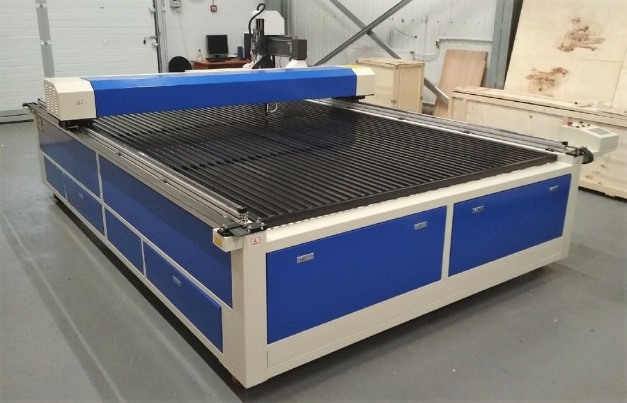 Ein Breitformatgerät, das als professionelles Modell auf dem Markt positioniert ist. Es hat eine hohe Schnittgeschwindigkeit, die Desktop-Fläche beträgt 2 mal 3 Meter. Das Design verfügt über zwei leistungsstarke Laser und ein System aus vergoldeten Spiegeln. Perfekt für eine hochspezialisierte Werkstatt. Die Lebensdauer der Laserröhre wurde auf 6500 Stunden verlängert.