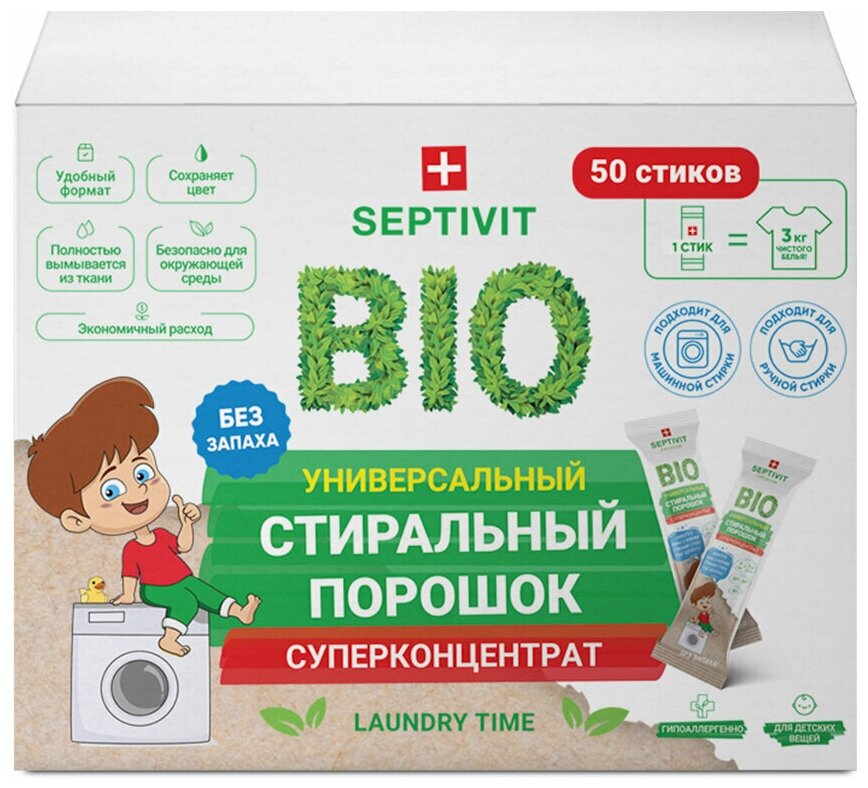 Hypoallergenes Pulver in Form von Sticks ist so einfach wie möglich zu verwenden und bequem für unterwegs und auf Reisen mitzunehmen. Ein Stick reicht für 3 kg Wäsche. Marke: SEPTIVIT Premium. Es wird auch bei Verwendung von kaltem, hartem Wasser vollständig aus dem Stoff ausgewaschen. Es kann sowohl im Automaten als auch an den Händen verwendet werden. Durchschnittspreis: 999 Rubel.