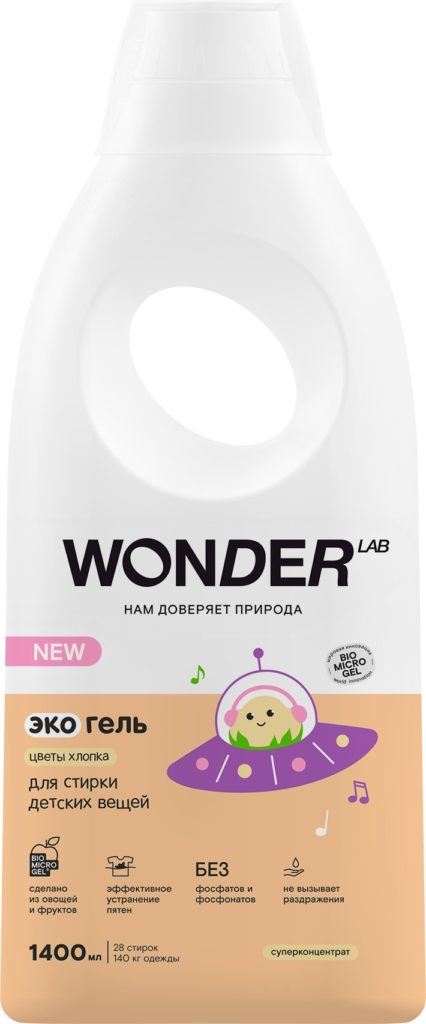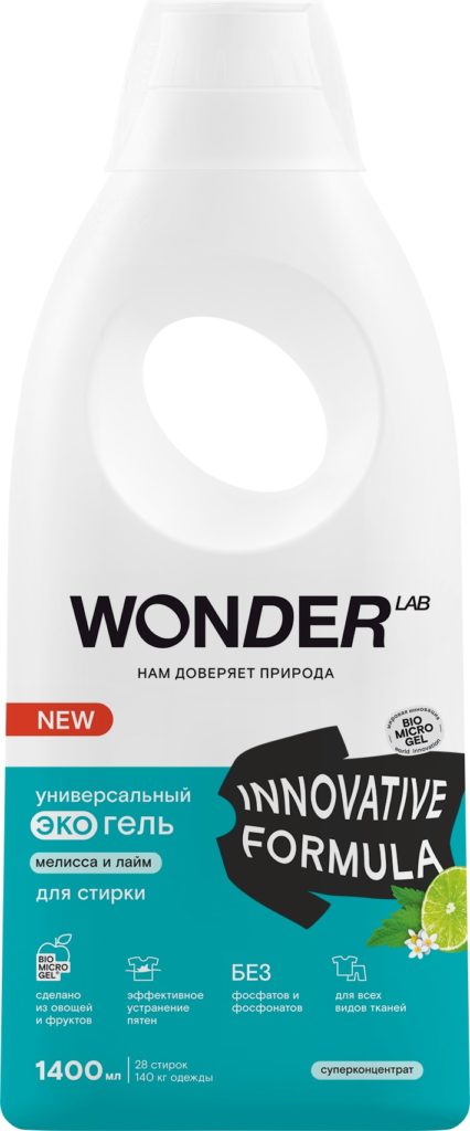 Ecogels zum Waschen der russischen Marke WONDER LAB sind ideal für Allergiker.Die einzigartige innovative Ecogel-Formel enthält keine hellen chemischen Duftstoffe, die lange im Gewebe verbleiben und zu einer Verschlechterung der Haut führen können. Ecogel wird vollständig aus den Fasern des Gewebes ausgespült und schädigt dieses nicht, ohne Hautirritationen zu verursachen. Die Zusammensetzung enthält keine Phosphate, Phosphonate und andere toxische Komponenten, die Mensch, Natur und Kleidung schaden. Sie sind auch für Membranstoffe geeignet, wirken antistatisch und entfernen effektiv Schmutz.