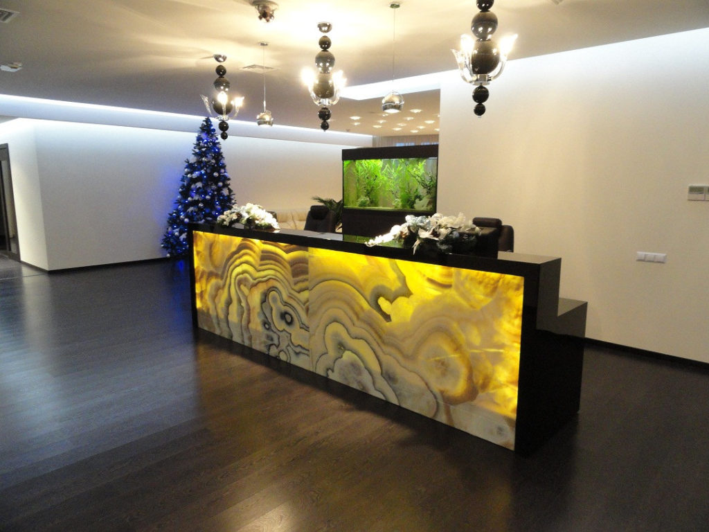 Damit sich der Arbeitsplatz des Administrators organisch in das Gesamtinterieur des Empfangsraums einfügt, empfehlen Experten, diese Frage bereits bei der ersten Planung der Inneneinrichtung mit dem Designer zu besprechen.