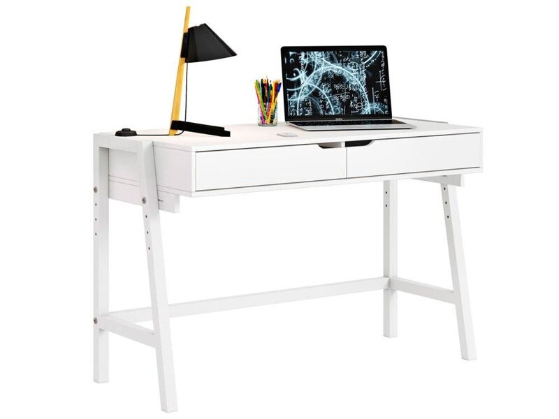 Die Tischplatte kann um bis zu 55 Grad geneigt und der Höhenverstellknopf nach rechts oder links eingestellt werden. Es gibt eine Gasfeder für sanfte Höhenänderungen. Es gibt praktische Schubladen. Geeignet für Erwachsene und Kinder mit einer Körpergröße von 100-180 cm Metallrahmen. Preis: 14990 Rubel.