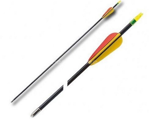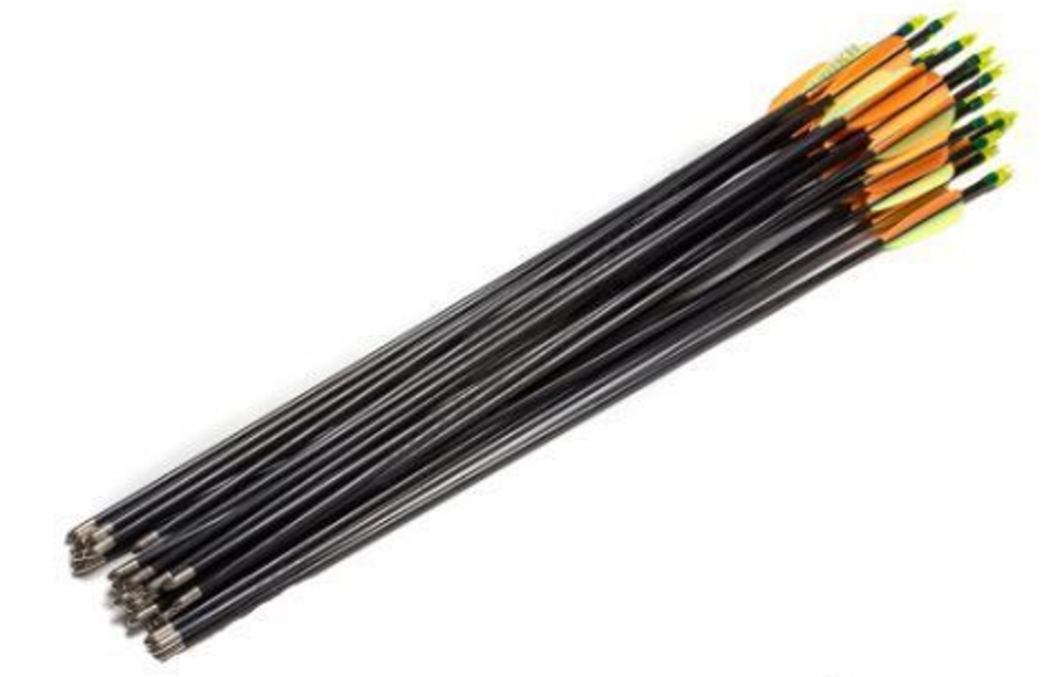 In China hergestelltes einheimisches Markenmodell zur Verwendung mit Compound- und klassischen Bögen bis zu 27 kg (60 lbs). Länge - 790 mm, Gewicht - 520 Körner. Dehnung bis zu 787 mm (31"). Inklusive Schaft, Einsatz, 100-Korn-Spitze. Ausgestattet mit 3" Streamline-Kunstfedern.