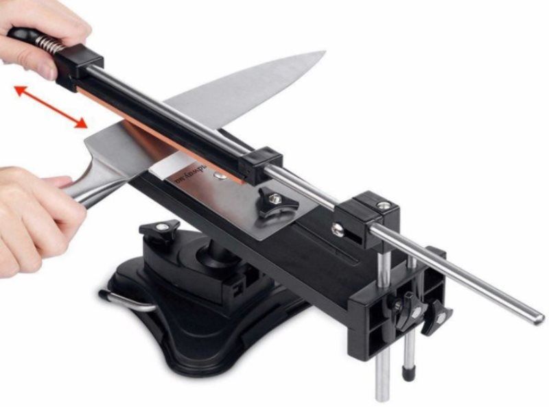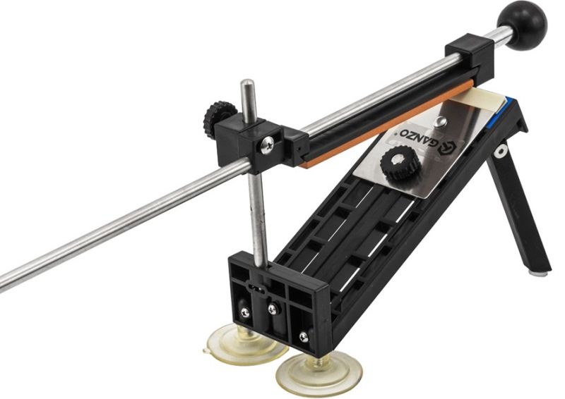 Dieses Modell der Messerschleifmaschine verfügt über mehrere Schleifzonen und wird dank der Saugnapfhalterung fest auf dem Tisch gehalten. Metallstruktur mit der Möglichkeit, den Schleifwinkel und Schleifmittel unterschiedlicher Rauheit und Härte einzustellen.