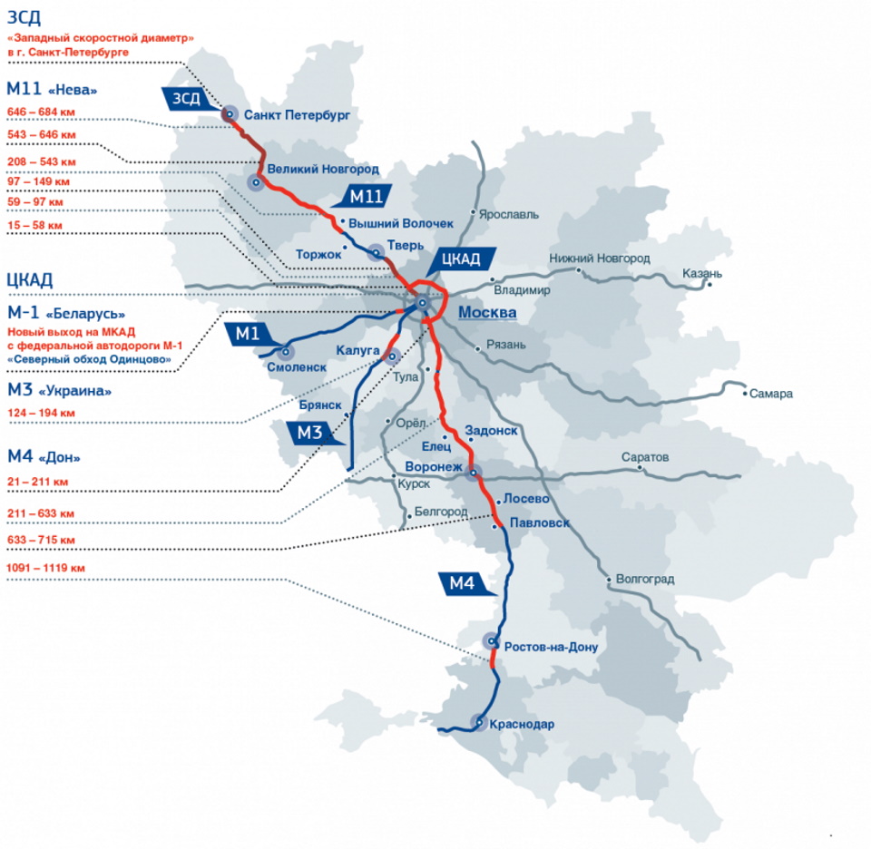 | LLC "Avtodor - Mautstraßen" | T-Pass | Mautpflichtige Autobahnabschnitte: M3 "Ukraine" (124-194 km); M4 "Don" -517, 517-544, 544-589, 589-633, 633-715, 1091-1119, 1195-1319 km); Umweg über Torschok; Umweg über Vyshny Volochok; Abschnitt Novgorod M11 "Newa"; Zentrale Ringstraße |