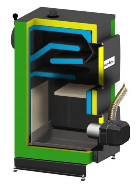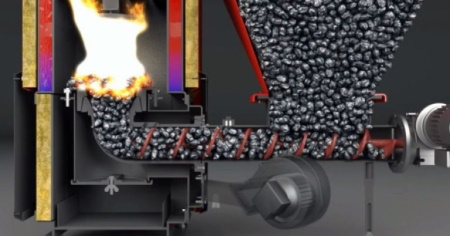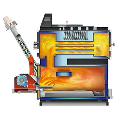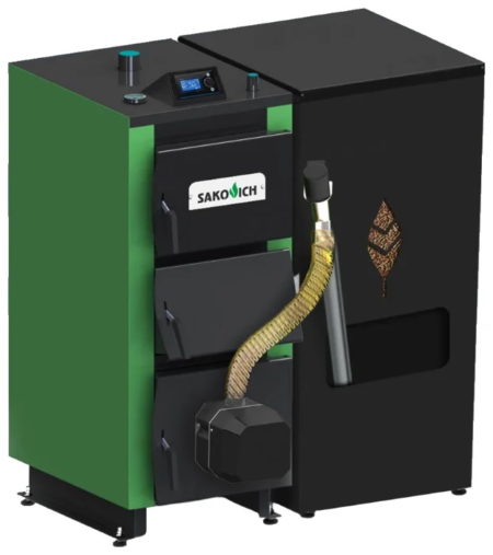 Moderne Ausrüstung mit automatischer Zufuhr von granuliertem Brennstoff in Form von Pellets. Er zeichnet sich durch Kompaktheit, hohen Wirkungsgrad bis zu 86 % sowie geringen Aschegehalt aus.
