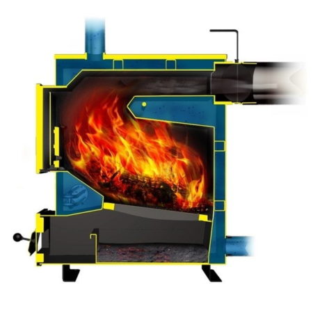 2. Mit fortschreitender Verbrennung steigt die Temperatur im Ofen auf 1000°-1300°, und die Erwärmung des Kühlmittels – Wasser – erreicht einen Arbeitswert von nicht mehr als 95°, der durch Regulieren des Luftzufuhrventils zu aufrechterhalten wird Brennkammer.