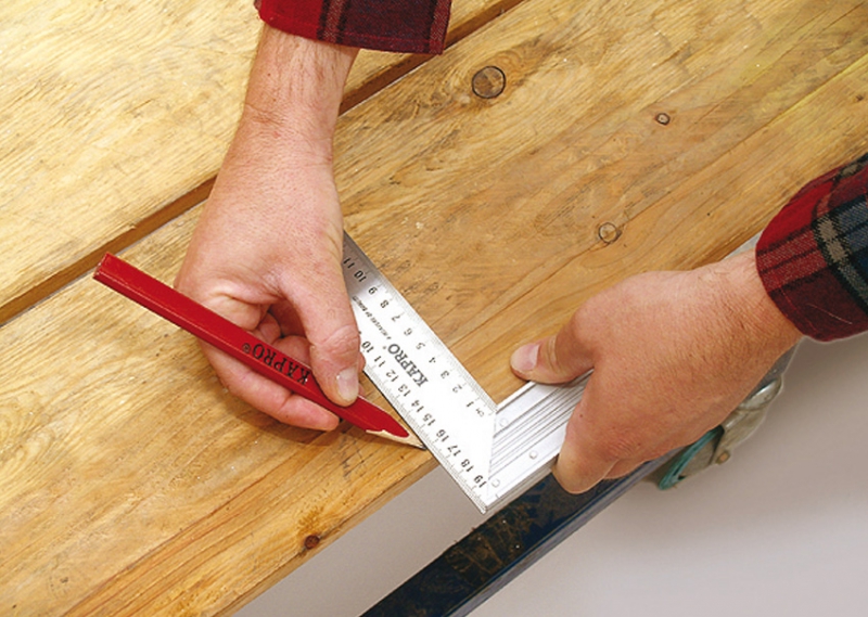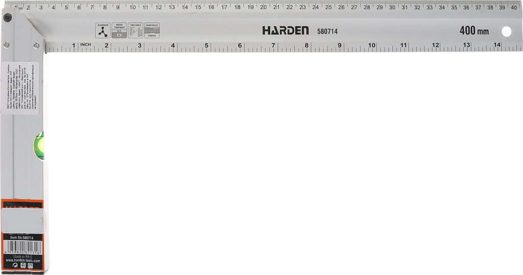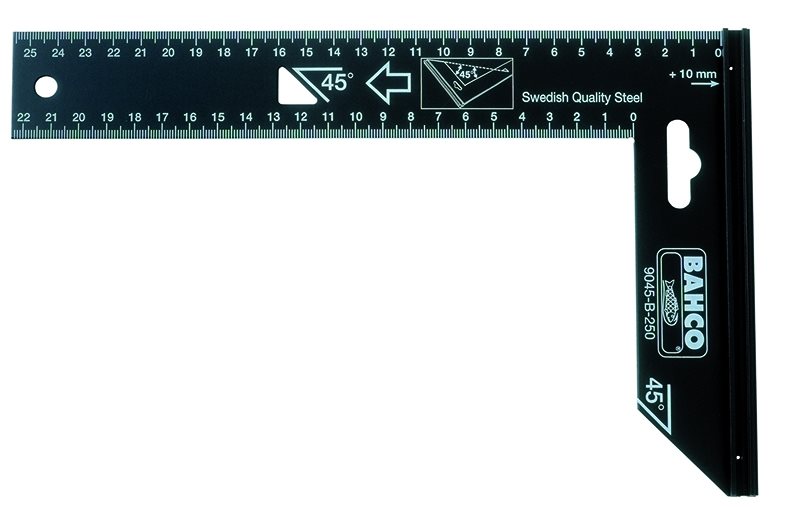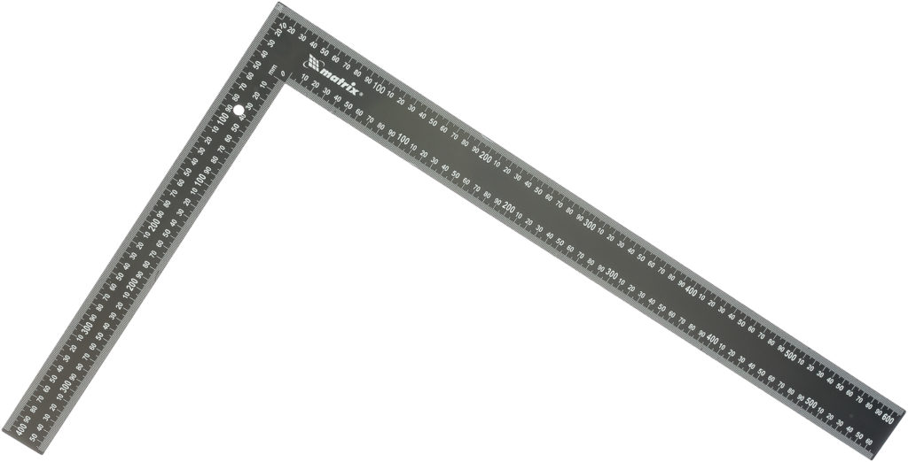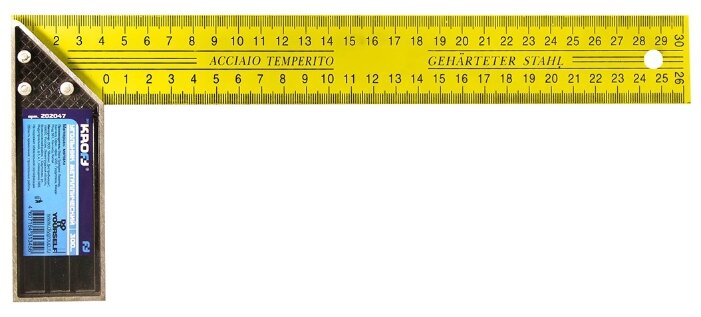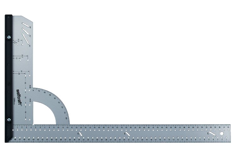 Für Markierungsarbeiten kann auch ein Schreinerwerkzeug (Messen rechter Winkel) verwendet werden. Die beidseitig eingravierte Skala erleichtert die Handhabung. Es hält lange, hat hohe Festigkeitseigenschaften, da bei seiner Herstellung gehärteter Edelstahl verwendet wurde. Der Griff ist aus Aluminium für Komfort.