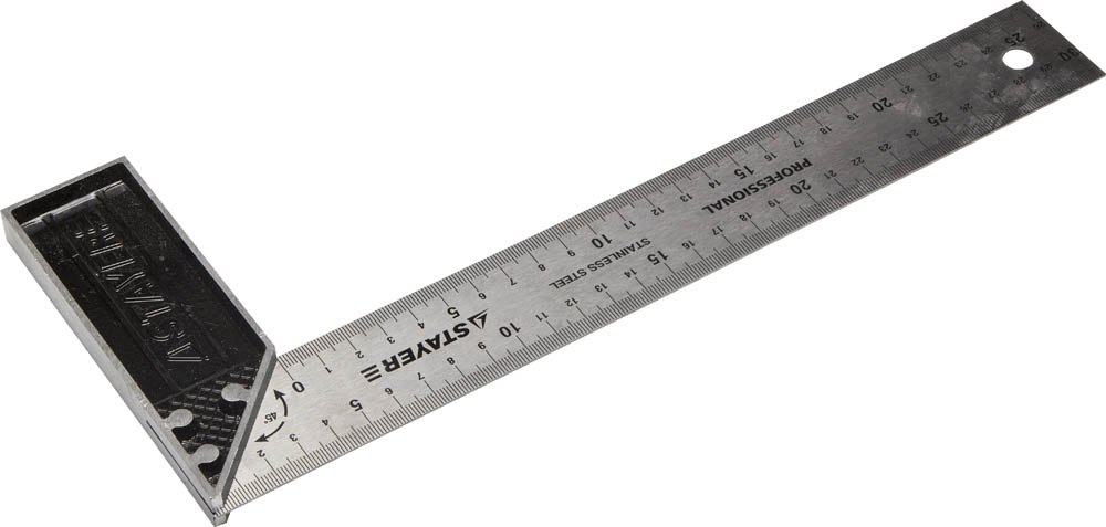 Tischlerausrüstung.Ein universelles Gerät kann alle Arten von Messungen und Winkelprüfungen durchführen. Es wird Werkstücken und Werkstücken überlagert. Dann wird ihre Horizontalität überprüft. Sie können nicht nur die Senkrechte, sondern auch die Winkel 45 einstellen0 und 1350. Das Gerät besteht aus Metall, das mit einer speziellen Beschichtung beschichtet ist. Dadurch wird das Auftreten von Korrosionsherden verhindert. Das Lineal hat eine metrische Skala, die Ihnen beim Markieren hilft. Die Risiken werden durch Gravur gemacht. Sie müssen sich also keine Sorgen um ihre Sicherheit machen. Zahlen und Teilungen sind während der gesamten Betriebszeit sichtbar.