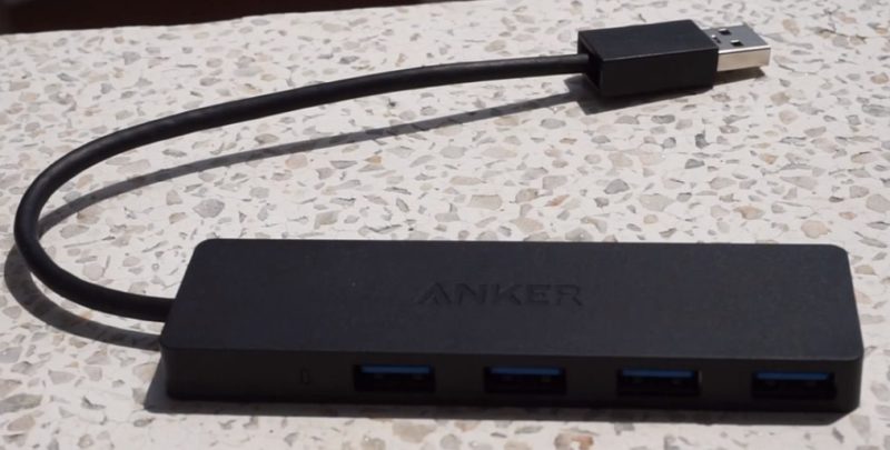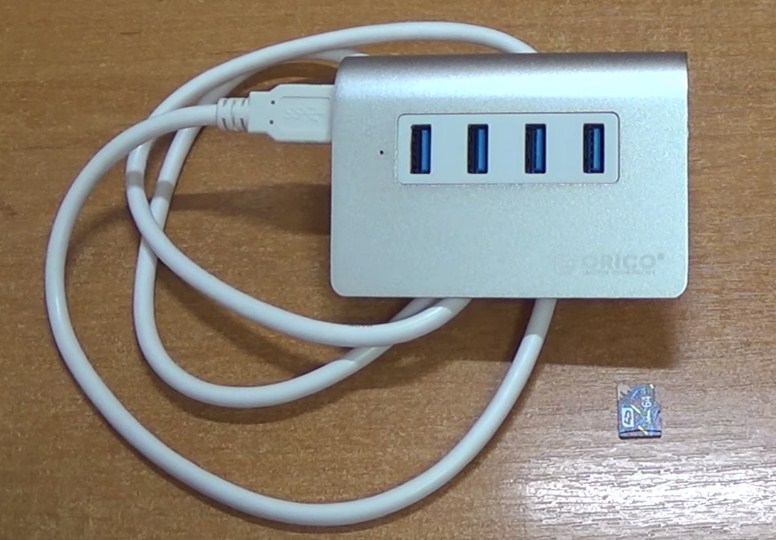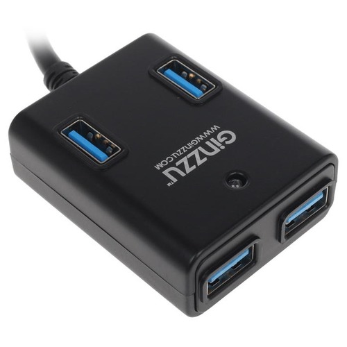 Der Budget-Hub ist in Schwarz gehalten. Das Gerät ist sehr klein, kann aber gleichzeitig 4 USB 3.0-Anschlüsse aufnehmen, die hohe Datenübertragungsgeschwindigkeiten (bis zu 5 Gb / s) bieten.