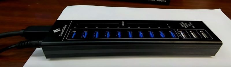 SmartDelux SDU3-P10C3 stellt dem Benutzer 10 Ports zur Verfügung, deren maximale Datenübertragungsrate bis zu 5 Gbps beträgt.Der Hub verfügt außerdem über 3 Anschlüsse zum Aufladen von Geräten, die bis zu 2,4 A Strom liefern.