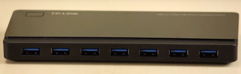 Der extern mit Strom versorgte TP-LINK UH720 verfügt über neun Anschlüsse, von denen sieben USB 3.0 für die Datensynchronisierung mit Geschwindigkeiten von bis zu 5 Gb/s sind, und zwei Anschlüsse für Schnellladegeräte mit einem Ausgangsstrom von 2,4 A. Um die schnellste Aufladung zu gewährleisten, Die intelligente Technologie bestimmt den Typ jedes Geräts und passt den Ausgangsstrom an den Bedarf an.