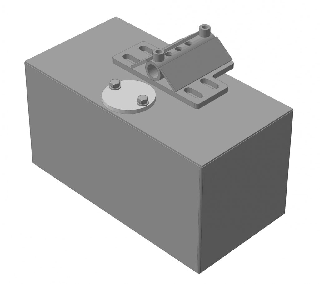 Ein weiterer Vertreter der Schüttgut-Beschwerungsmittel. Wie der Name schon sagt, wird er am vorderen Zapfen des Grubbers befestigt. Das Produkt ist ein hohles Rechteck mit Stahlwänden. Das Gewicht des leeren Tanks beträgt 6,7 kg, das ungefähre Gewicht des gefüllten 24,3 kg. Zum Befüllen des Tanks empfiehlt es sich, ein Sand-Kies-Gemisch zu verwenden. Zum Befüllen des Behälters ist es erforderlich, die Kappe von der Einfüllöffnung abzuschrauben, die mit einer Schraubverbindung befestigt ist.
