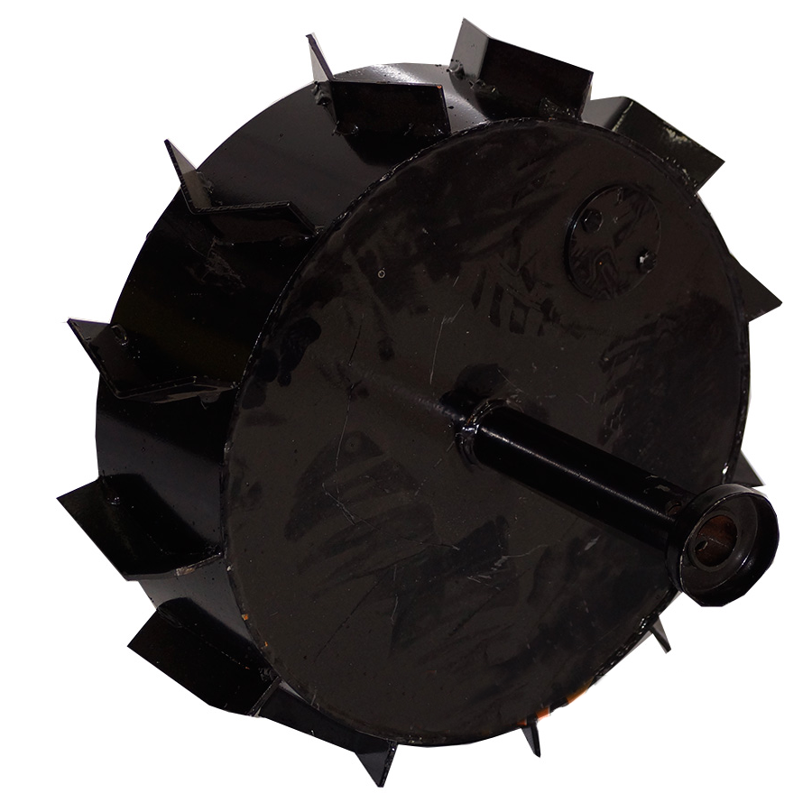 Dieses Modell kombiniert nicht nur die Eigenschaften von Beschwerungsmitteln, sondern auch von Stollen. Diese Konfiguration ermöglicht es Ihnen, keine zusätzlichen Strukturen an den handgeführten Traktor zu hängen, und vereinfacht die Montage und Demontage sowie die Vorbereitung der Gartengeräte für den Betrieb. Stege eignen sich für Motoblöcke russischer Hersteller wie Oka, Cascade und Neva. Ein Laufradpaar wiegt 16,9 Kilogramm. Der Landedurchmesser beträgt 30 mm.Scheibendurchmesser - 450 mm, Breite - 120 mm. Die Produkte sind schwarz lackiert und mit Vorsprüngen am Umfang ausgestattet, um eine bessere Haftung auf dem Boden zu gewährleisten.