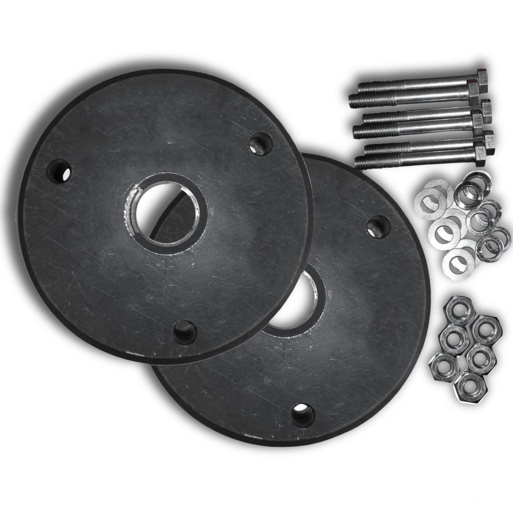 Jede Platte hat ein zentrales Befestigungsloch sowie 4 zusätzliche, die für die Befestigung an Ösen ausgelegt sind. Die Platten haben sich beim Arbeiten mit Ösen am besten bewährt, es ist jedoch möglich, sie auf Transporträdern oder auf einer Deichsel zu montieren. Das geringe Gewicht jeder Platte ermöglicht es Ihnen, ihre Platzierung zu variieren und eine optimale Balance zu erreichen. Die Kosten für das Kit betragen 3400 Rubel.