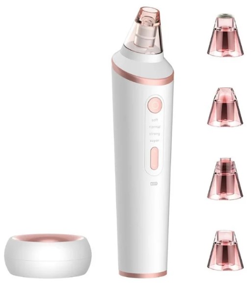 Auch dieser Staubsauger ist von einem chinesischen Hersteller. Das Kit enthält 4 Düsen. Die Düse mit Mikrokristallen ist für die Dermabrasion konzipiert, d.h. Entfernung abgestorbener Hautzellen. Eine große runde Düse reinigt porentief, entfernt Mitesser und wird auch zur Massage verwendet. Die kleine runde Düse ist für empfindliche Haut konzipiert, hilft im Kampf gegen Akne, reduziert Altersflecken. Die ovale Düse glättet feine Linien, macht tiefe Falten weniger ausgeprägt, geeignet für die Anwendung in Augenwinkeln und Nase. Das Gerät ist sowohl für junge Haut als auch für Menschen über 40 Jahre geeignet. Durch die Verwendung aller Arten von Düsen können Sie Salonverfahren ersetzen. Sehr einfach zu bedienen, auch ein Anfänger kommt problemlos damit zurecht.