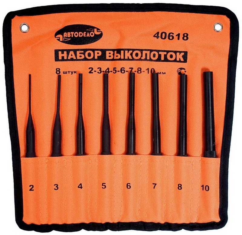 Das Set beinhaltet 8 Werkzeuge mit einer Länge von 150 mm. Das Herstellungsmaterial ist starker und haltbarer Chrom-Vanadium-Stahl, der für die höchstmögliche Härte wärmebehandelt wird. Diese Geräte eignen sich optimal zum komfortablen und schonenden Entfernen von Verschlusshülsen, Stiften und einer Vielzahl anderer Teile, die zum Lösen einen Schlag erfordern. Die Riffelung am Griff verhindert ein Verrutschen des Werkzeugs in der Handfläche. Die mitgelieferte Tetron-Tasche erleichtert das Aufbewahren und Transportieren von Schlägen. Die empfohlenen Kosten für Einzelhandelsketten betragen 970 Rubel.
