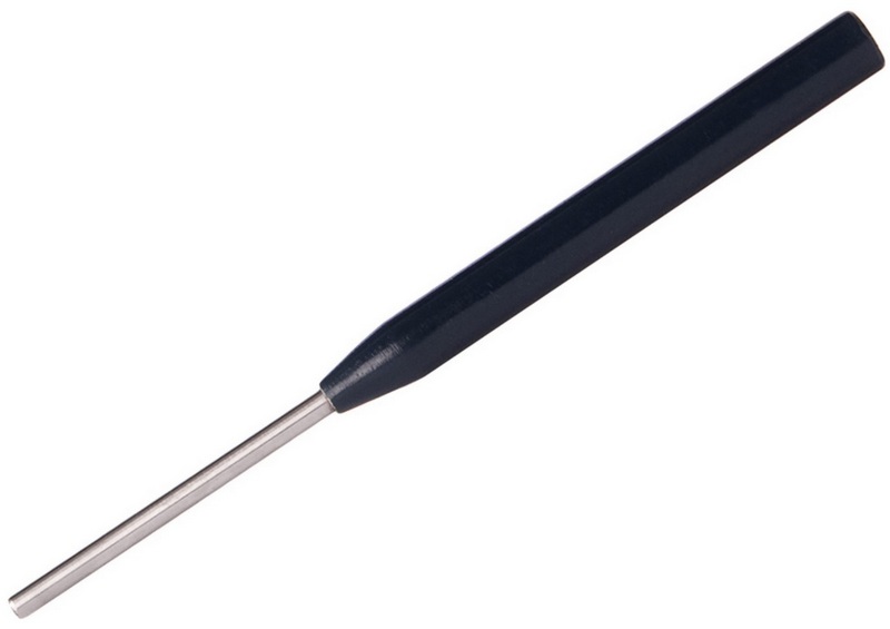 Das Modell dient zum Ausschlagen von Stehbolzen, Dübeln, Dübeln oder defekten Schrauben, Schrauben und Bolzen. Das Werkzeug ist aus hochwertigem Stahl gefertigt. Das Material ist zuverlässig und langlebig. Spezielle Farbgebung verhindert Korrosion. Spezifikationen: Länge, mm - 150, Spitzendurchmesser, mm - 2,5, Material des Arbeitsteils - Stahl, Griffmaterial - Stahl, Nettogewicht, kg - 0,07. Die empfohlenen Kosten für Einzelhandelsketten betragen 200 Rubel.