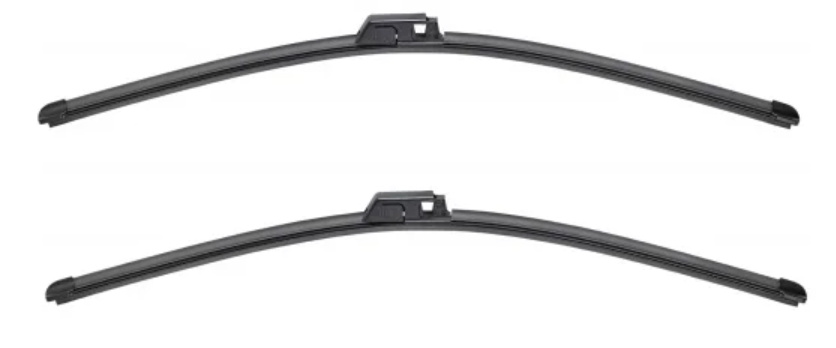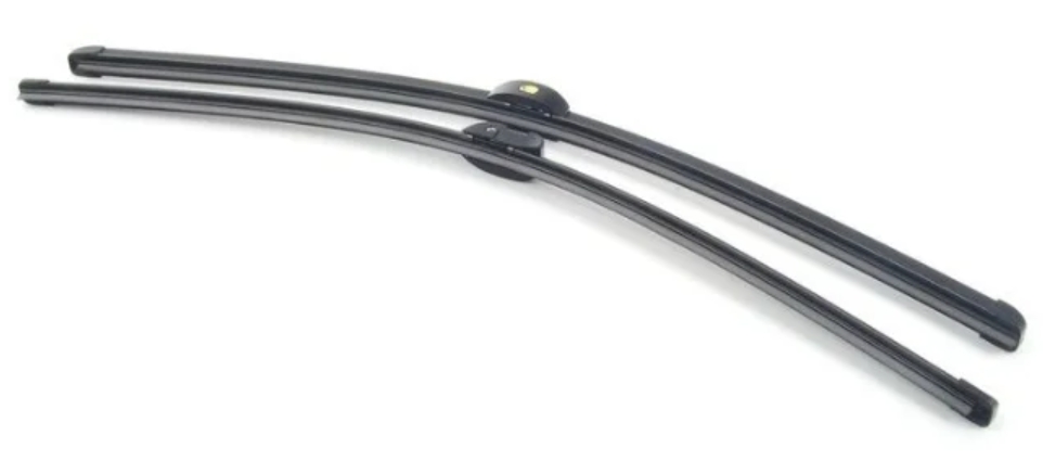 2. Das rahmenlose (rahmenlose) Modell sieht aus wie eine gebogene Stange, deren aerodynamische Form einem Spoiler ähnelt. Zwischen zwei dünnen Metallplatten ist eine Gummi-Kunststoff-Folie befestigt, die wie eine Bürste wirkt. Im Mittelteil befindet sich eine Montagehalterung, an den Seiten befinden sich Stecker: