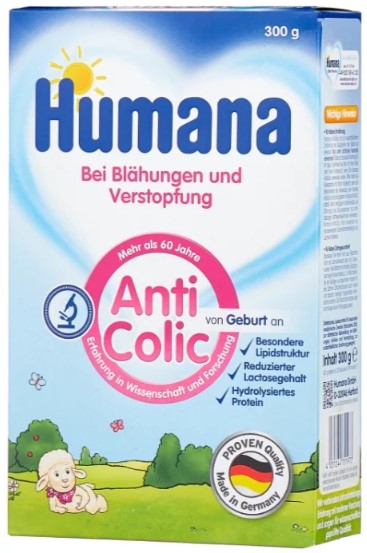 Sie können die Mischung für Kinder ab der Geburt bis zum Alter von sechs Monaten verdünnen. Die Zusammensetzung zeichnet sich durch das Vorhandensein von Präbiotika und das Fehlen von Zucker, Stärke, Gluten und Konservierungsmitteln aus. Die Fütterung mit dieser Mischung lindert nicht nur Koliken in Krümel, sondern lindert auch das Problem der Verstopfung.