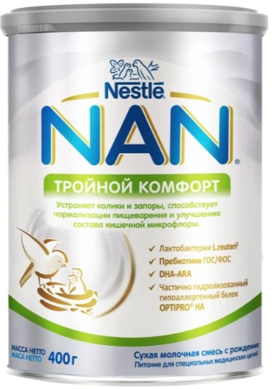 Diese Milchnahrung wird von pädiatrischen Gastroenterologen nicht besonders für Neugeborene in den ersten Tagen ihrer Geburt empfohlen. Es ist am besten, damit zu beginnen, es in Beikost für Kinder ab 14 Tagen einzuführen. Diese Babynahrung verbessert die Immunität gut, beugt der Entwicklung von Allergien vor und verbessert die Funktion des Verdauungssystems. Seine Formel enthält: Pflanzenöle, Präbiotika, Nukleosidphosphate, Magermilchpulver, Probiotika.