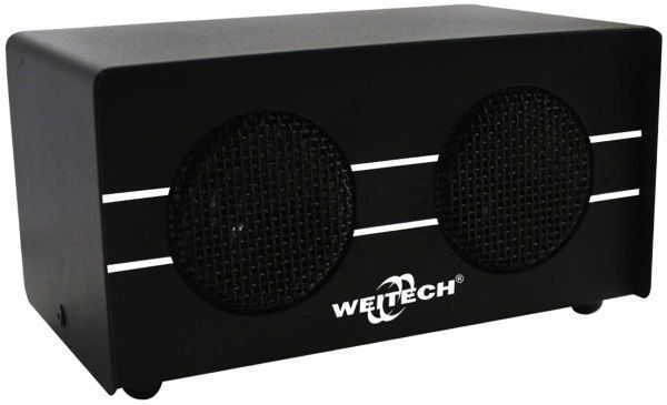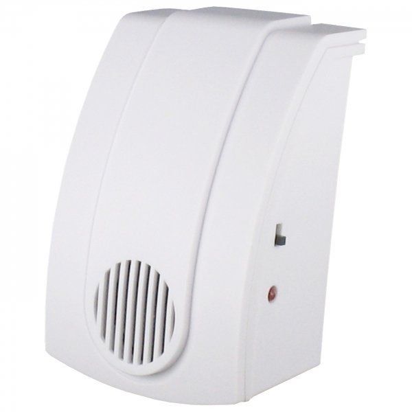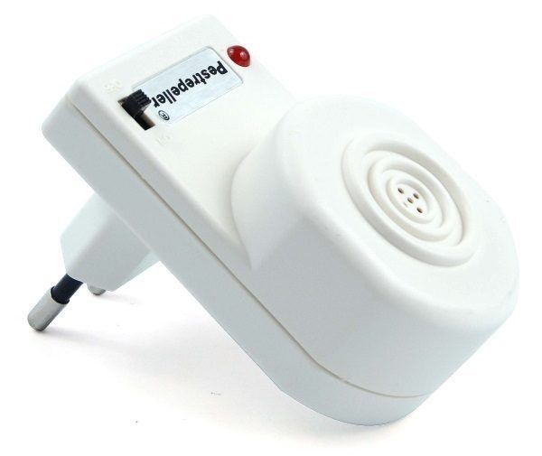 Der Hersteller behauptet, dass dieses Ultraschallgerät in der Lage ist, die Wohnung in 2 Wochen Dauerbetrieb von Schädlingen zu befreien. Auf dem Körper eines stationären Geräts befinden sich zwei Lautsprecher, die jeweils einen Bereich von 260 Grad abdecken. Dieser Abwehrtyp ist für mittelgroße Räume bis 460 Quadratmeter geeignet. Das Gewicht des Produkts beträgt 150 g, Leistung - 1,5 Watt.