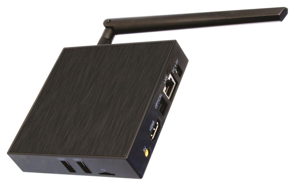 MXQ Pro hat die Form einer rechteckigen einfachen Standardbox, der Körper besteht aus schwarzem Kunststoff, an den Enden befinden sich drei Ausgänge, ein Ladeanschluss. Es kann eine Reihe von Auflösungen von Medieninhalten bis zu 4K perfekt und einfach unterstützen, der Arbeitsspeicher beträgt 1 GB und dies schränkt die Fähigkeiten des Geräts ein.