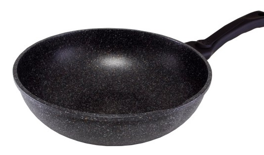 Die Wokpfanne ist aus Aluminium, Durchmesser 20 cm. Hat ein Marmor-Finish. Dadurch ist es kratz- und stoßfest. Die Designer haben bis ins kleinste Detail an alles gedacht - die schwarze Farbe des Griffs, der Körper ist aus schwarzem Marmor gefertigt, der Ausguss erleichtert das Entfernen überschüssiger Flüssigkeit. Ausgestattet mit einem ergonomischen Griff.
